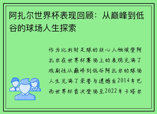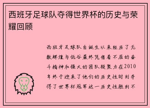 文章摘要:本文将详细探讨中国国家足球队在历届世界杯中的征战历史,并展望未来的可能发展。从历史的角度分析中国队如何从亚洲赛场走向世界舞台,回顾其参加过的每届世界杯的表现与成就。同时,也将关注中国足球队的...