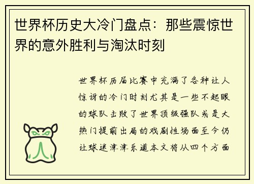 《激情四射的绿茵之梦 巴西世界杯经典集锦背景音乐回顾》旨在回顾2014年巴西世界杯上那些经典的比赛集锦及其背景音乐。在这场全球瞩目的足球盛会中,背景音乐不仅为比赛增添了浓烈的氛围,还帮助观众更好地沉浸...